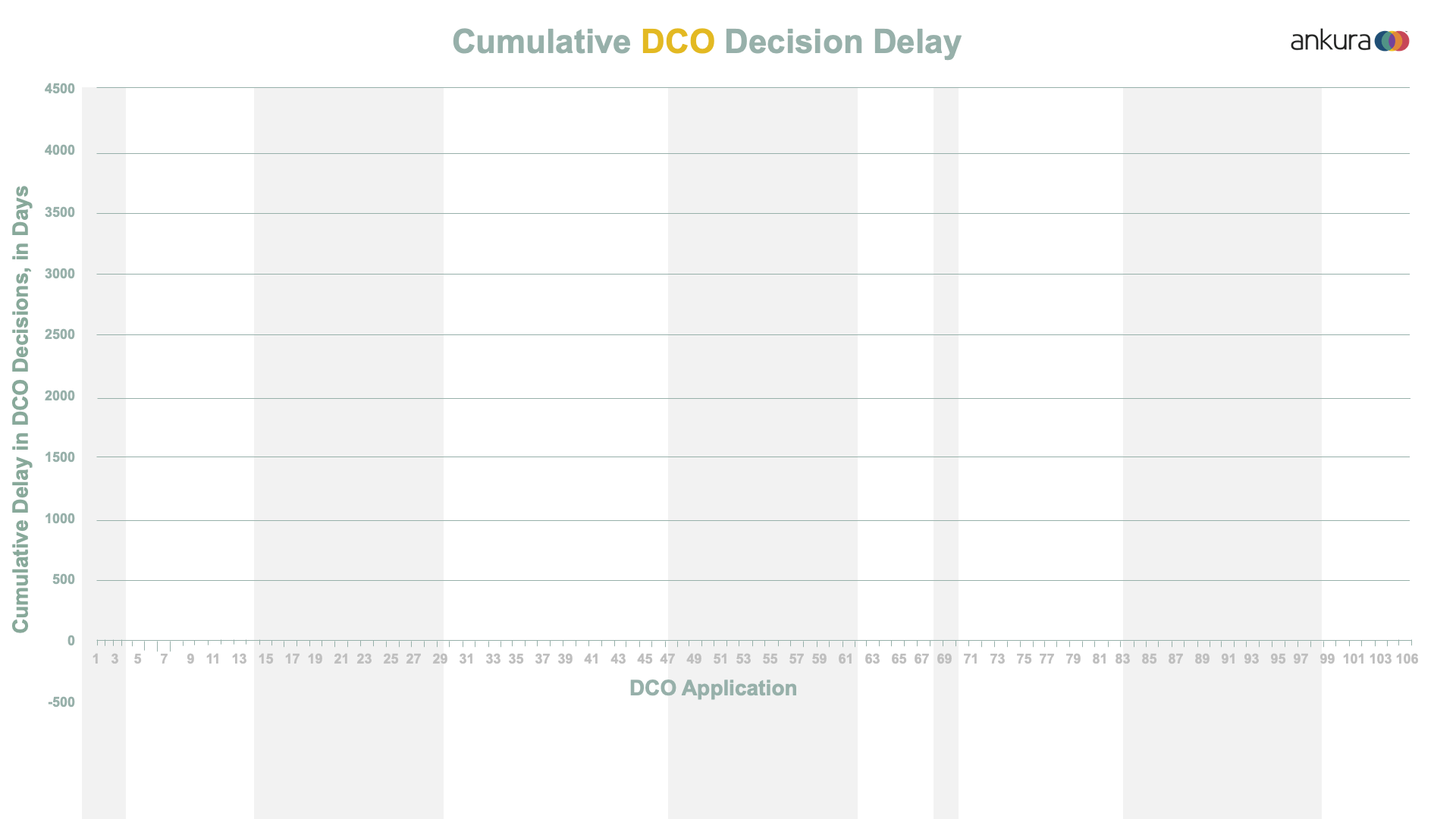 It is taking longer for major infrastructure projects to get off the drawing board and into the ground. Between 2012 and 2016, Development Consent Order (DCO) decisions were – with a small number of exceptions – on time or early. The total delay – calculated as the sum of each DCO decision delay within the period, both positive and negative – at the end of 2016 was 509 days. In the following five-year period, timeliness deteriorated considerably with the total delay increasing to almost 4,000 days by the end of 2021.