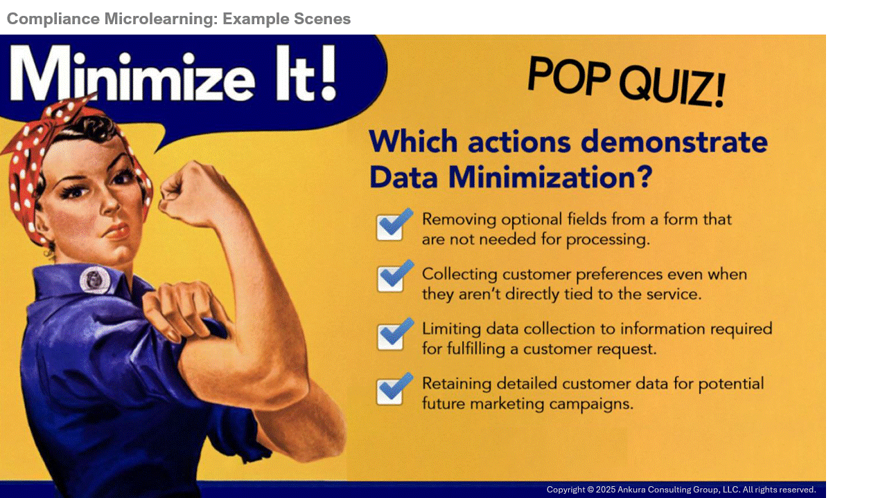 For more than 20 years, I have helped organizations improve their compliance programs. At Ankura’s Information Governance Learning Practice, we design customized Compliance Microlearning experiences that are engaging, cost-effective, and deployable within weeks.